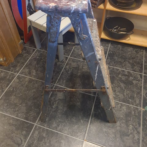 Charmerende gammel fransk træstige til dekoration. Har lækker patina.