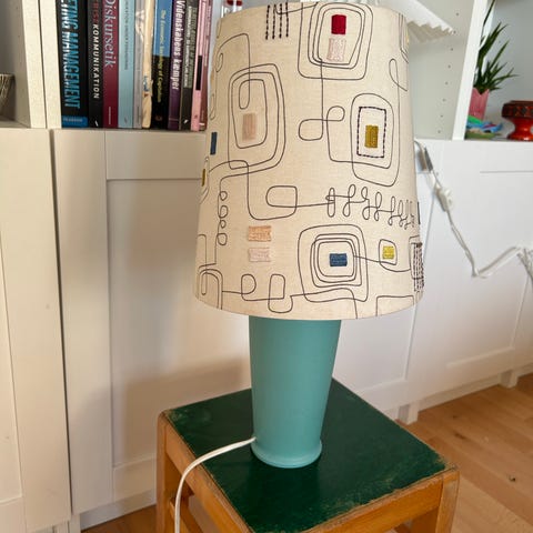 Stor turkis retro lampe, formoder den er svensk. Flot stand , en lille fejl i glasset, se foto