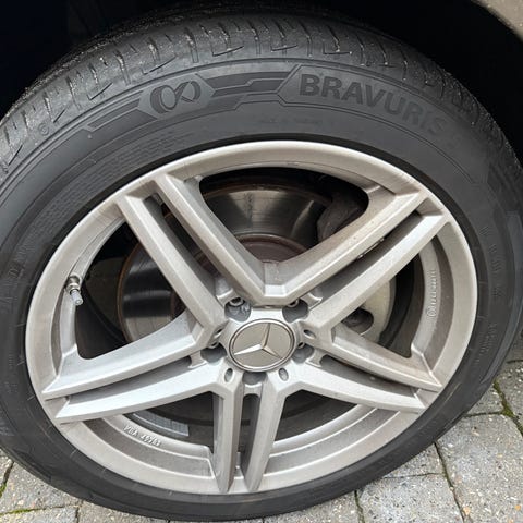 Originale Mercedes Benz fælge med stjerne logo i centerhul. Continental 101V RF ContiVanContact 200 dæk. Monteret april 2024 og har kørt ca. 10.000KM