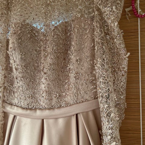 Smuk gallakjole, brudepigekjole, you name it. Brugt én gang. Stoffet er tung satin.