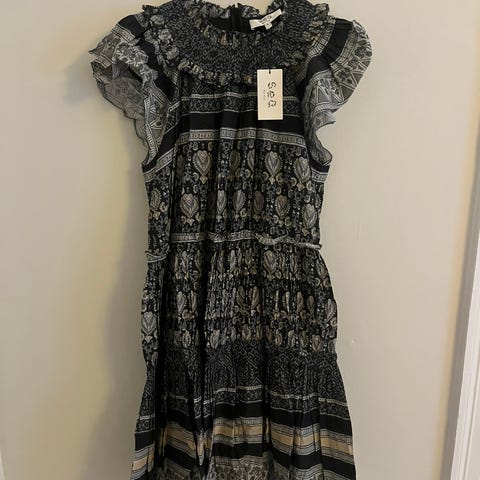 Ubrugt velour Sea New York kjole stadig med prismærket. Kjolen er lidt skinnende og falder fantastisk pga materialet. Der er en lang lynlås i ryggen. Smukke pufærmer flot udskæring i ved hælden og i ryggen.