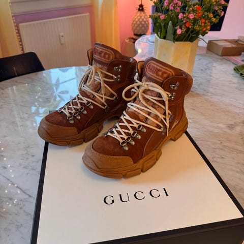 I normally use size 44, but with Gucci I use 43. Length boot shaft approx. 46 cm measure on the inside.