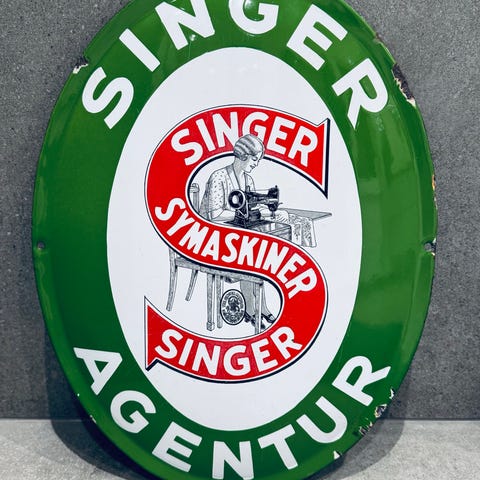 Emaljeskilt. Octav malkemaskinen.