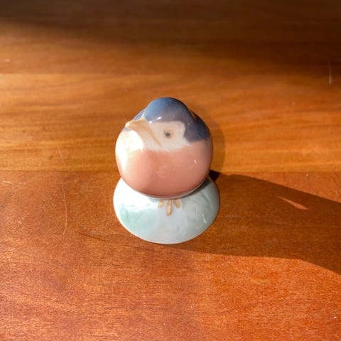 Fin lille figur af en rødkælk fra Royal Copenhagen. Den ses sjældent i hvid.