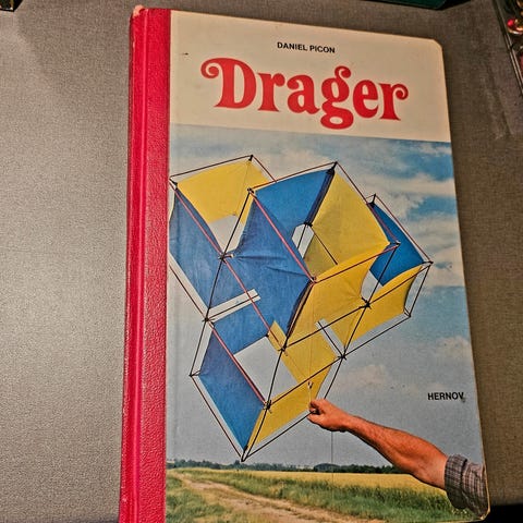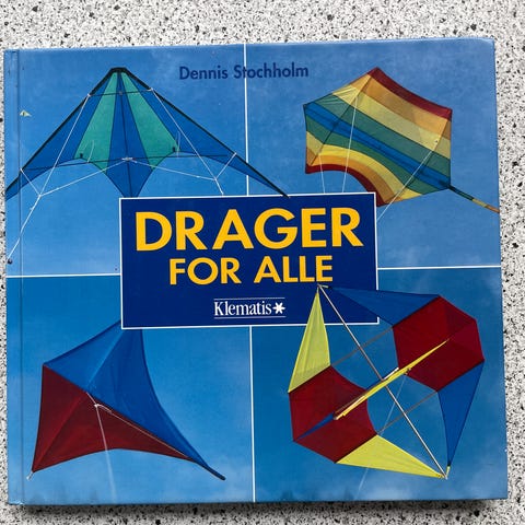 Drager for alle - bygning af etlinede drager og tolinede stuntdrage. Af Dennis Stochholm. Hardback. Stort format. Klematis, 1993. Fejlfrit eksemplar