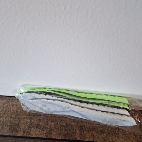 Gele agtige indlægssåler ca. str. 41 - 42. 26 cm lange. Bløde. Kan lægges i sammen med almindelige såler og giver lidt ekstra comfort. Fra ikke ryger hjem.