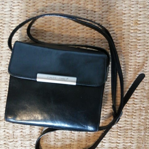 Cladio Ferrici sort skuldertaske i læder. Mål ca (19 x 26)cm