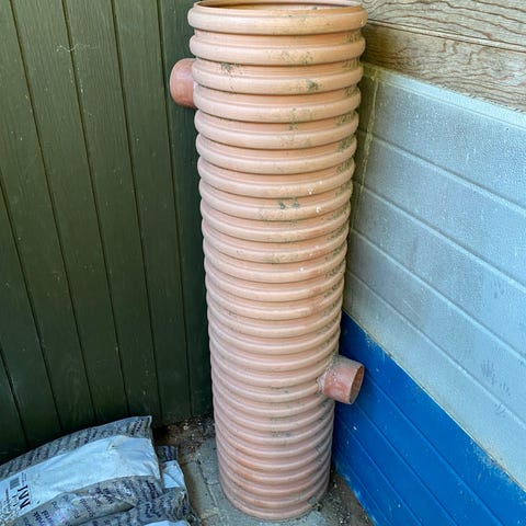 Afløbsrør, a 100 - bøjninger, samlinger a 15,- Ø300 mm regnvandsbrønd a 750,-