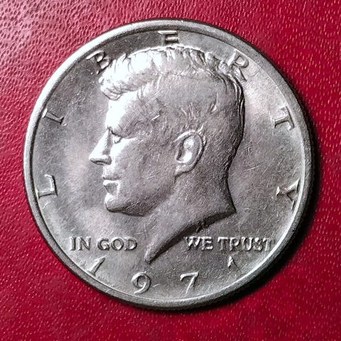 Mindemønt til ære for John F. Kennedy, mærket D for Denver (The Denver Mint).