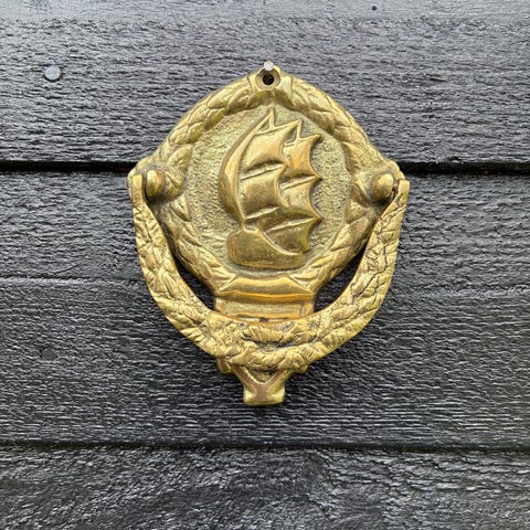 Gammel dørhammer udformet som et sørøverskib