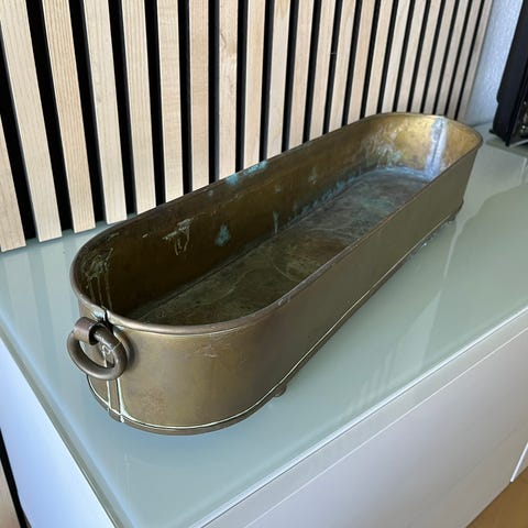 Urtepotteskjuler, Messing, 80 år gl., Den er rigtig smuk flot gammel og fejler ikke noget, Kan sendes ved betaling af Porto