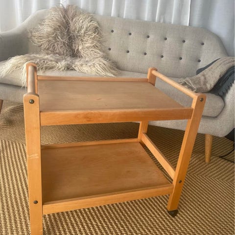 Barbord, b: 43 l: 64 h: 60, Gammelt fint træ rullebord / barbord