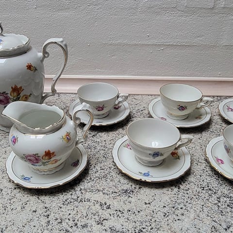 Der er et lille skår i en af de små tallerkner som vist på billede 3.