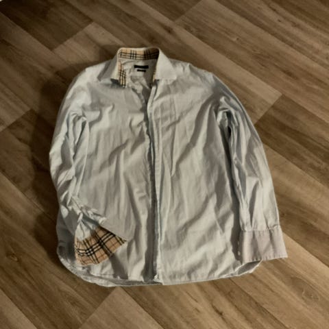 Lækker skjorte str M i sort og hvid ternet mønster fra Thomas Burberry, der er en fin broderet detalje på det ene ærme hvor der står TB.