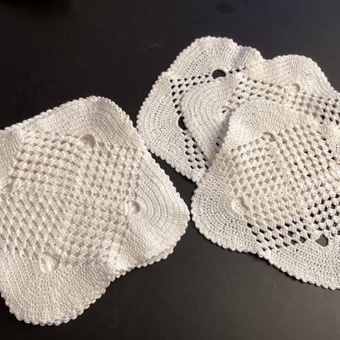 7 stk. beigefarvet servietter med frynsekant, bomuld. 20x20 cm.