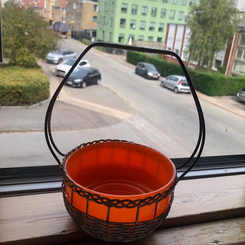 En i sølvplet kurv, en med kobber-kurv og en i "sølv" med massiv flot klar Glasskål