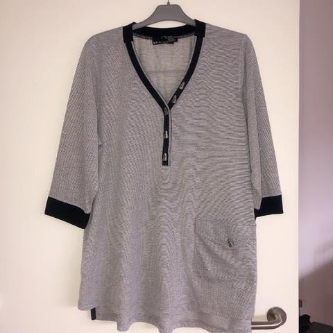 Blusekjole, GOZZIP, str. S, Dyb skinnende sort, 70% rayon og 30% polyester, Næsten som ny, Sort stor-skjorte eller skjortekjole. Kjolen er 75 cm lang foran og bagpå er den 90 cm lang. Der er en 27 cm lang slids bagpå. Lukkes med 8 skjulte knapper foran. 3/4 lange ærmer der kan gøres kortere med en strop der kan knappes. I fin stand. Slidser i siderne