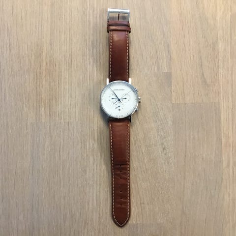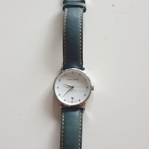 Flot og yderst velholdt ur. Design Henning Koppel nr 421. Diameter incl krone 33 mm. Stålkasse. Flot sort kalveskindrem. Sender efter aftale