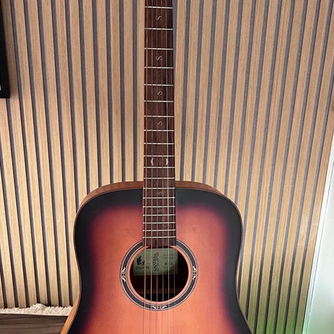 Santana Mark 12 - Dansk mærke og design. - God og fyldig klang . - Meget flot bord omkring lydhullet og på bagsiden, og flotte kanter. - Usædvanlig pæn stand. - Antagelig en topmodel - i dag koster en topmodel 4000-6000 kr.