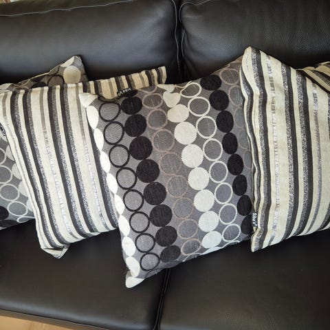 Pudebetræk, Dea Kudibal, Billede nr 1 er forsiden og billede 2 er bagsiden - 2 stk pudebetræk fra Dea Kudibal, samt et matchende i nude bomuld.