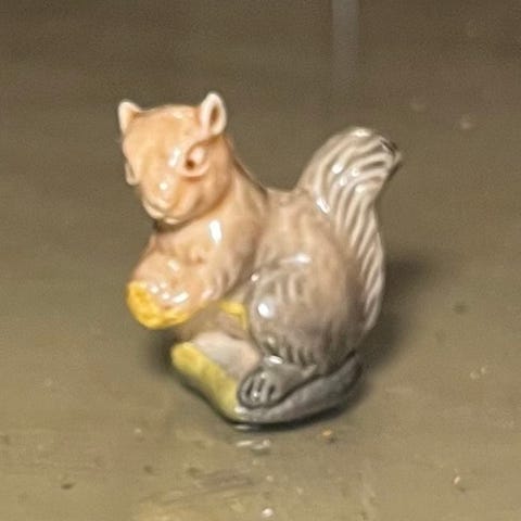 Den er I okay god stand taget i betragtning at den er af ældre dato (ved ikke hvor gammel den er) dog er der enkelte steder hvor den er mere 'slidt' - det røde 'reb' på dens ansigt kunne godt bruge en ekstra tråd så det sidder bedre fast igen 😊 se billeder.