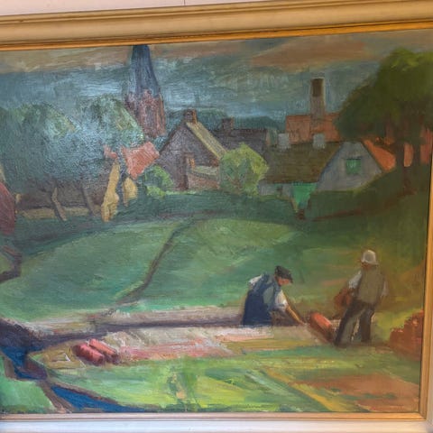 Billede Eiler Løndal, b: 31 h: 26, Mål inkl ramme. Motiv fra Århus Havn
