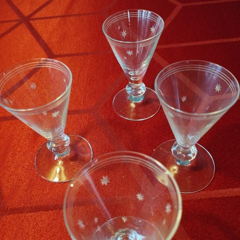 Jeg sælger min flotte samling af Antikke Holmegaard Stjerneborg krystalglas med slebet mønster og med tre slebne bånd, spredte stjerner og facet slebet knap (ikke øl og vandglas)