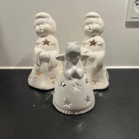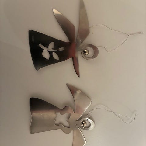 2 engle, 2 søde engle på hjerter. Sælges samlet for kr.20:-. Se gerne mine andre annoncer for julepynt. Ved køb af en Georg Jensen lyseholder kan disse engle følge med i købet. Sender ikke. Fast pris. Kun SMS på 2280 4812