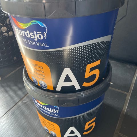 hvid olie træbeskyttelse, nordsjö, 4,5 liter, hvid, Kvalitetsmaling hvor der er omkring 4,5 liter tilbage i bøtten. Oliebaseret til udendørsbrug.