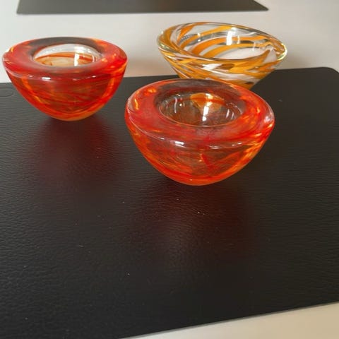 Glas lysestager til fyrfadslys, 4 glas med gulddekoration. Kan bruges som lysestager til fyrfadslys. Oprindeligt er det drikkeglas. Fra NORDIC LAB . Prisen er for alle 4