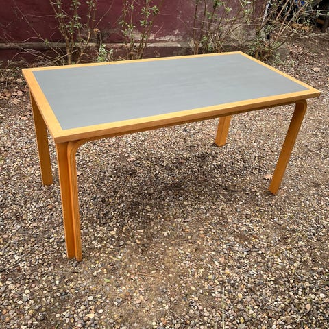 Model Domino. Tegnet af Rud Thygesen & Johnny Sørensen for Magnus Olesen i 1980’erne. Udført i bøgefiner og top af mørkegråt linoleum.