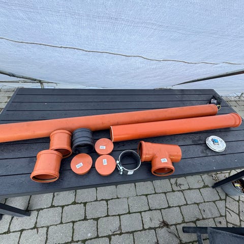 40 stk. anlægsrør DN100 6 meter. Uslidset. Der er kun muffe på nogen af dem.