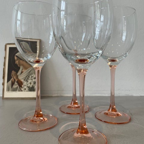 6 smukke vinglas med fod i tin, fransk vintage glas.