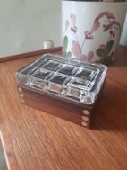 Træskrin, Palisander og krystal, Meget flot Håndlavet palisander træskrin med tykt krystalglas låg fra ca. 60erne.