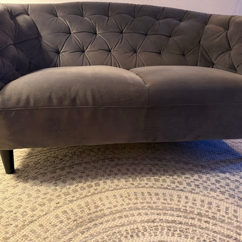 Fin lille sofa fra Ellos “Donna”. Næsten som ny. Sælges grundet uventet flytning. Smukt brunt velour betræk, passer så fint ind i en mindre lejlighed. Små brugspor på ben. Puderne kan også følge med.
