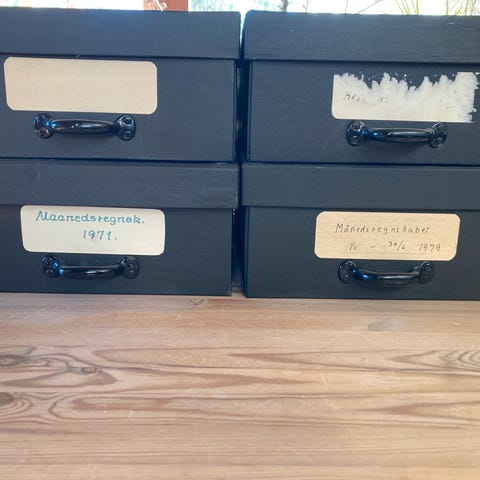 Gammel æske / dokumentkassette til opbevaring af papirer i A4 format. Sort. Fra Ehapa.