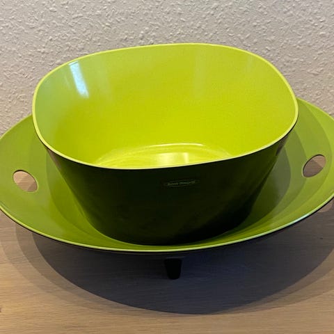 Flot retro sæt bestående af 3 røde fade, med sort bagside i melamin.