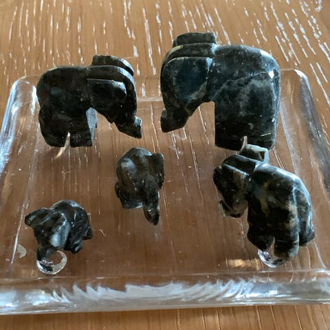 Bronze elefant på marmor plade.