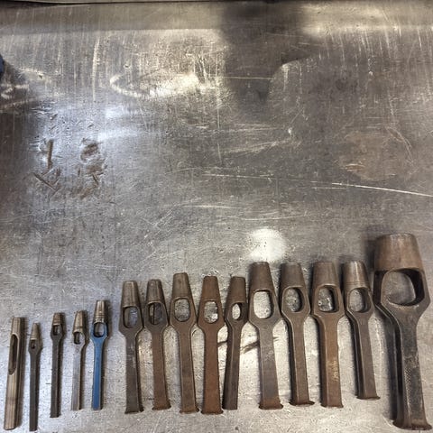 Med gaffel, Længde 18 cm. fint gl. stykke værktøj i god og velholdt stand uden hakker i hugkanten. Kan sendes. Tlf 50472082
