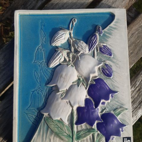 Ca. 17,8 x 13,7 cm bred. Relief med 2 lyseblå/hvidlig sommerfugle på hvidglaseret baggrund med blomster, designet af Aimo Nietosvuori for svenske Jie Gantofta (1942-1992). Mærket bagpå med logo, Aimo-logo, nummer og signatur. Fin stand.