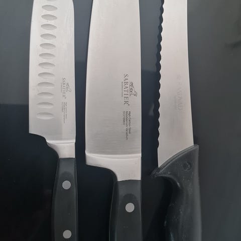 2 Sensai urteknive fra Raadvad, 7 cm lange i bladet, brugt få gange og er som nye, ligger stadig i stålæskerne og der medfølger folder om knivene, begge for kr. 450,00.