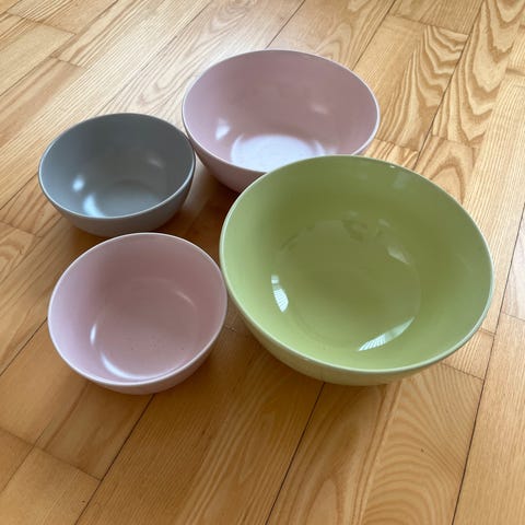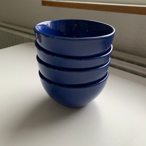 Ikea skåle lys blå- stor 14 cm ø, 8,5 cm høj. 2 små 6,5 cm ø 7 cm høj ialt 60kr