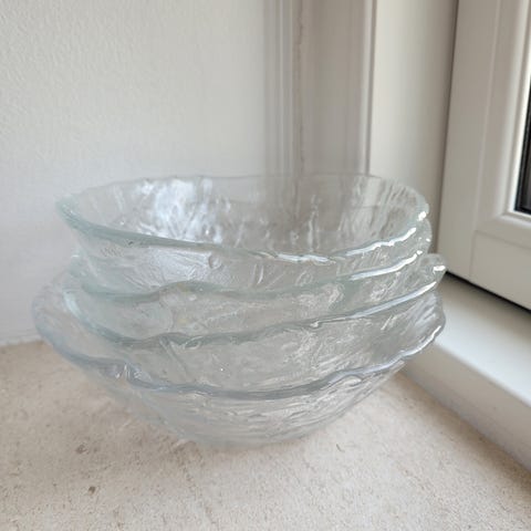 Glas, Høj glasskål, blå/'Revontulet', finsk/1970'erne, Tauno Wirkkala / Humppila, op til 15 cm høj, 23,5 cm i diameter.