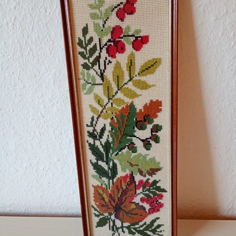 Broderet billede i ramme