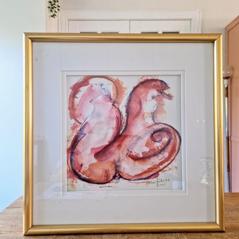 Akvarel, Hanne Sie , motiv: Fantasy, stil: Abstrakt, b: 51 h: 70, Flot og særdeles velholdt maleri. Signeret af kunstneren. Kan sendes efter aftale