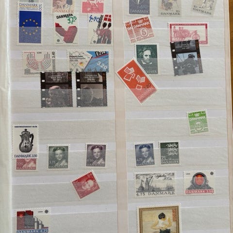 7 indstiksalbum med blandet Europa, herunder Danmark. Dertil nogle æsker med grovsorterede øvrige udland + en del som jeg aldrig fik sorteret. Jeg vil tro, der er 2-3000 mærker i alt. Dertil et fyldt tykt førstedagsalbum fra 1970'erne og en løs stak førstedagskuverter også fra 1970'erne. Også en del julemærkeark. Billederne viser lidt eksempler på det hele. Jeg stoppede med at samle ca. 1980, og samlingen har ligget røgfrit og støvfrit i stuetemperatur i alle årene. Jeg kan evt. aflevere samlingen i Ringsted, Roskilde, Holbæk, Københavnsområdet.