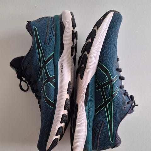Asics løbesko i størrelse 44.5 sælges. Brugte, men stadig funktionelle til træning, hverdag eller reserve. Har slid på ydersålen og lidt slid på indersiden, se billeder.