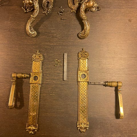 3 sæt messing dørgreb i fin stand sælges.