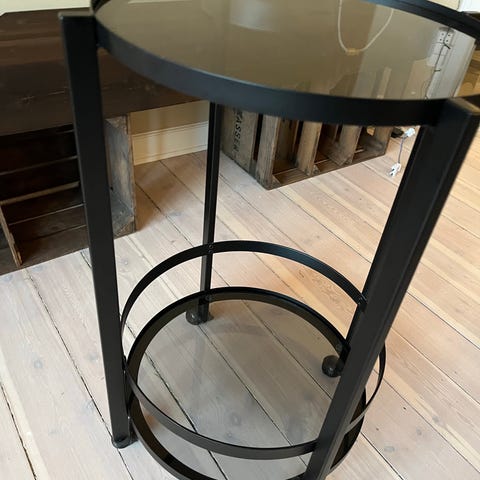 2 stk sofaborde, med røgfarvede glasplader, stammer fra bar miljø fra slutningen af 60 erne.