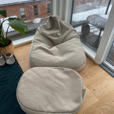 Fin sækkestol og puf fra det danske brand Karmameju.